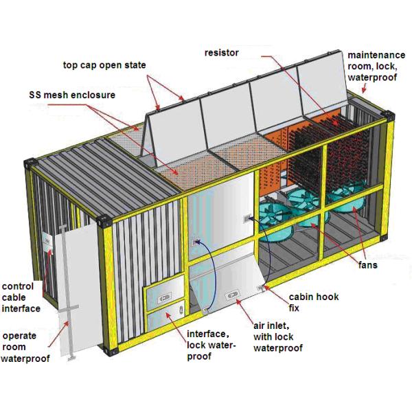 | Casing Dimensions and Cooling | Forced air cooling,Horizontal inlet air,Vertical cooling 6058*2438*2591mm (L*W*H) 20’GP container type. |